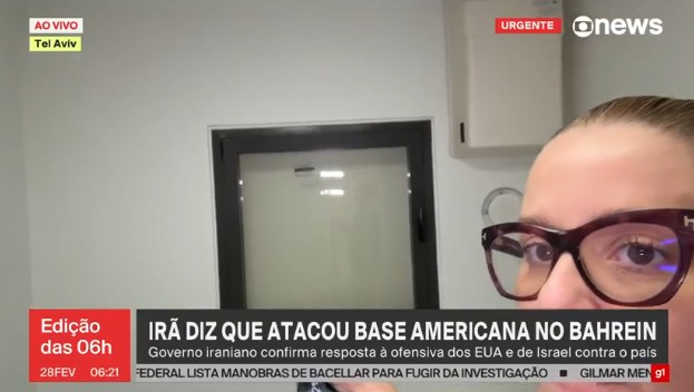 Sirenes tocam em Israel, e repórter se abriga em quarto de segurança em Tel Aviv A repórter Danuza Mattiazzi, da Globonews, que vive em Tel Aviv, capital de Israel, precisou se abrigar em um quarto de segurança enquanto estava ao vivo neste domingo (1º). Este é o segundo dia consecutivo que a jornalista se encaminha para o abrigo, após um alerta ser acionado diante de ameaças de ataques do Irã. Nas imagens, Danuza ou