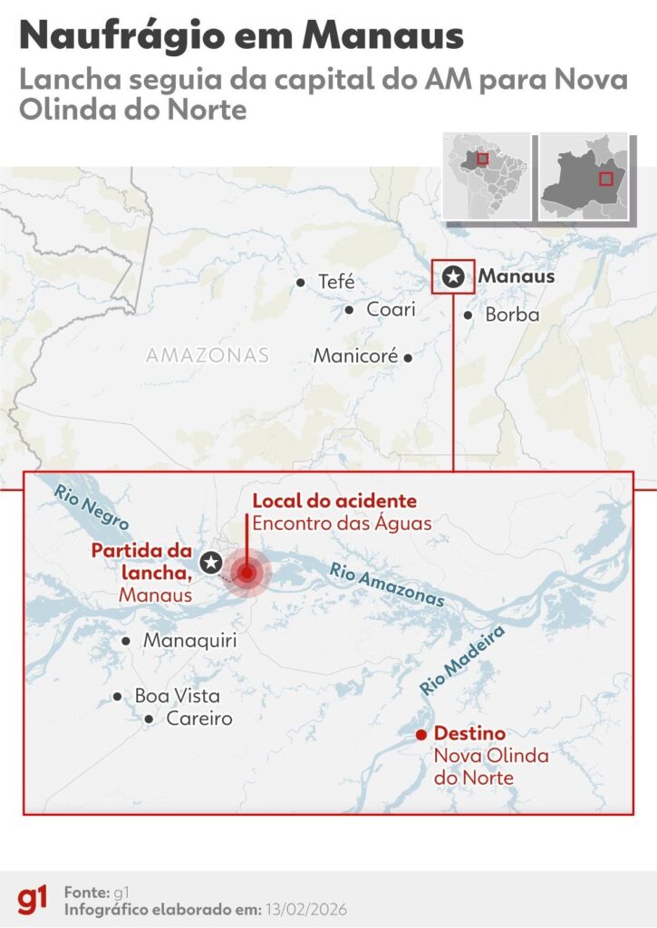Duas pessoas morrem após embarcação naufragar no Encontro das Águas em Manaus Quatro sobreviventes do naufrágio da lancha Lima de Abreu XV no Encontro das Águas, em Manaus, já receberam alta hospitalar após atendimento em unidades da rede estadual, segundo a Secretaria de Estado de Saúde do Amazonas (SES-AM). Eles passaram por avaliação clínica e exames. Uma quinta paciente segue internada, com quadro de saúde estáve