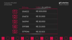 - Loteria Federal hoje: resultado do concurso 6043 e números sorteados