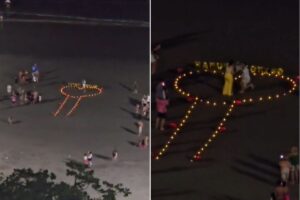 - Posição de velas em pedido de namoro na praia viraliza pelo formato: 'Quinta série'; VÍDEO