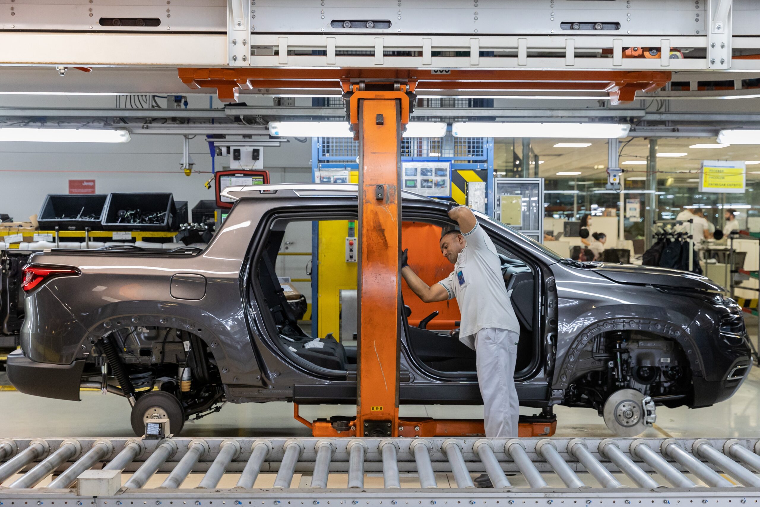 Fiat Toro passa pela linha de produção da Stellantis em Goiana, Pernambuco Divulgação / Stellantis A fabricação mensal de veículos no Brasil alcançou, em março, o maior nível desde outubro de 2019. Foram fabricadas 264,1 mil unidades no mês, um aumento de 35,6% em comparação a março de 2025. Em relação a fevereiro, a alta foi de 27,6%. Os dados são da Associação Nacional dos Fabricantes de Veículos Automotores (Anfav…
